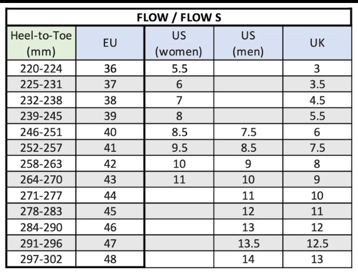 Both FLOW and FLOW S models fit true to size. However, our FLOW models are designed for more casual use and therefore are slightly more generous in terms of volume, while FLOW S has a tight and secure fit.