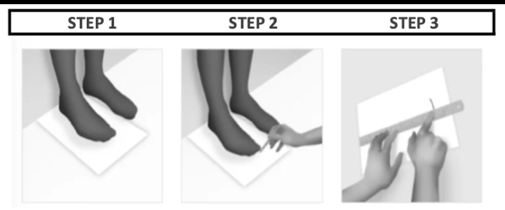 Step 1: Place your feet on a piece of paper with your heel against the wall standing up