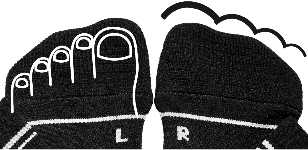We are simply making socks the way they should be, mimicking the shape of our feet for best fit and ultimate barefoot sensation.